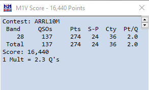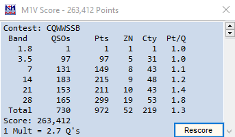 Contest Notes: Good activity, but was hard going at times. Good multipliers but lower QSO numbers than other sessions.