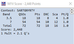 Contest Notes: Good activity, but was hard going at times. Good multipliers but lower QSO numbers than other sessions.